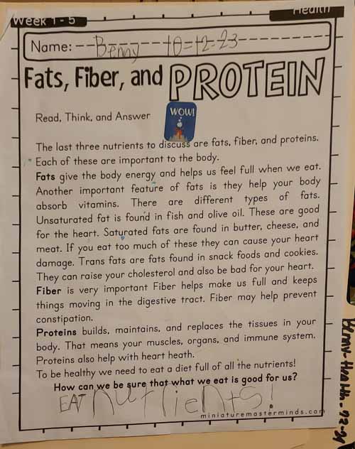 Benjamin’s Language Arts Samples